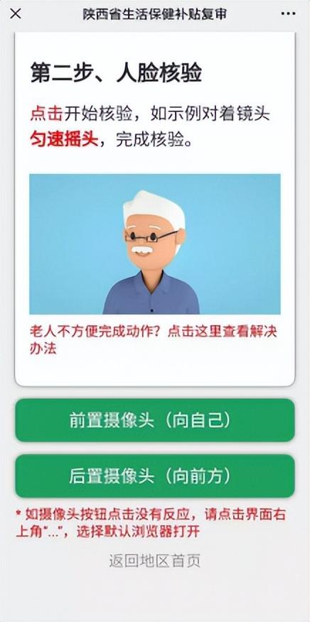 凡繼續(xù)享受70周歲以上高齡補(bǔ)貼資格的老年人必須每年參加復(fù)審。復(fù)審采用手機(jī)自助復(fù)審為主,使用智能手機(jī)關(guān)注“三秦寶”或“陜西老齡”微信公眾平臺(tái),由本人或家屬按步驟操作(附操作視頻)。對(duì)于運(yùn)用智能手機(jī)技術(shù)困難的老人,本人可持第二代《居民身份證》原件、戶口本到所屬轄區(qū)的社區(qū)衛(wèi)生服務(wù)中心、鄉(xiāng)鎮(zhèn)衛(wèi)生院、村衛(wèi)生室(社區(qū)衛(wèi)生服務(wù)站)進(jìn)行信息核實(shí)并簽字確認(rèn)。
