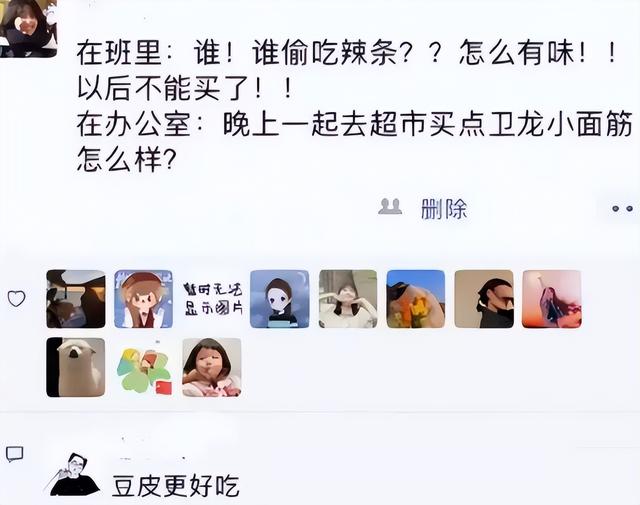 尤其是老師在發(fā)朋友圈時(shí),也習(xí)慣性將學(xué)生屏蔽不讓他們看,但偶爾也會(huì)有失誤的情況,女老師發(fā)朋友圈屏蔽錯(cuò)分組,意外被學(xué)生發(fā)現(xiàn)有“兩副面孔”,在同學(xué)面前對(duì)辣條“嚴(yán)防死守”,但在辦公室卻是帶頭吃辣條的那個(gè)人,而學(xué)生也默默評(píng)論“豆皮更好吃”,屬實(shí)是太社死了呀!