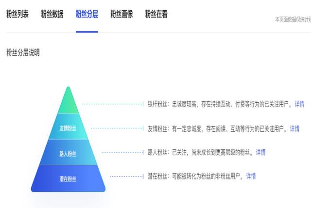 粉絲分層主要包含:鐵桿粉絲、友情粉絲、路人粉絲和潛在粉絲。