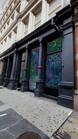 而在 BALENCIAGA 的裸眼 3D 廣告之前,來自中國武漢的 3D 藝術(shù)家 Shane Fu 便已與紐約創(chuàng)意團隊 Reference 展開合作,將 LV monogram 氣球「塞進」了曼哈頓第五大道的 LouisVuitton 分店外墻。此外 Shane Fu 還使用 3D 軟件為 ZARA 紐約商店櫥窗創(chuàng)作了一段 CGI 特效動畫,無數(shù)五顏六色的小球組成滾滾波浪在其中不停翻騰。