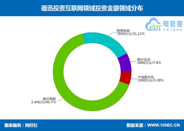 在所有領域中,德迅投資偏愛數(shù)字零售領域,投資金額為2.44億元,占比65.7%;其次是跨境電商領域,為7850萬元;數(shù)字生活領域為2900萬元;產(chǎn)業(yè)數(shù)字化領域為2000萬元。