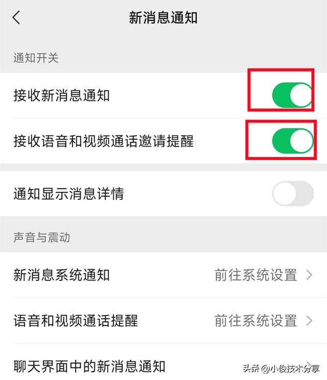 在啟用新消息通知后,請務(wù)必將【接收新消息通知】和【接收語音及視頻通話邀請?zhí)嵝选窟@兩個(gè)選項(xiàng)都開啟!