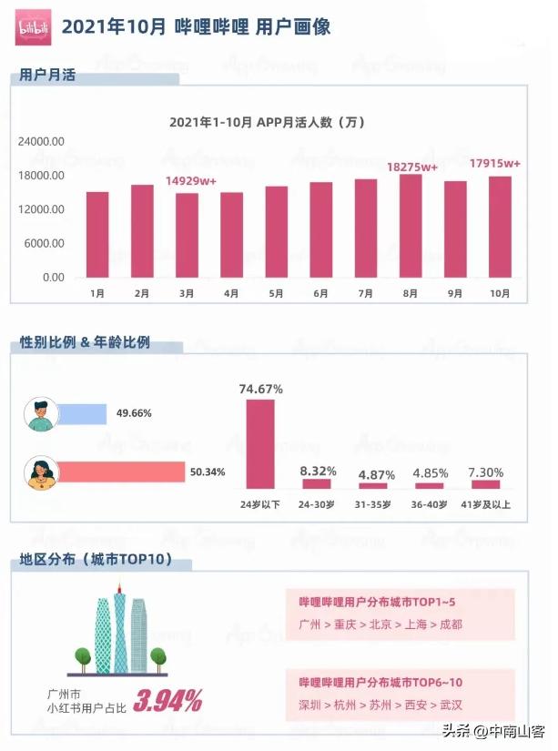 由此可見,B站的Z世代和高線城市用戶占比高。