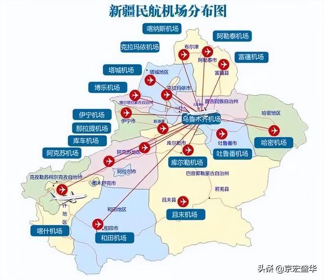 目前,新疆建成投入使用的飛機場有18個,是全國擁有機場最多的省區(qū)。至2025年,新疆區(qū)內(nèi)將布局規(guī)劃33個機場,繼續(xù)保持機場數(shù)量全國之最。