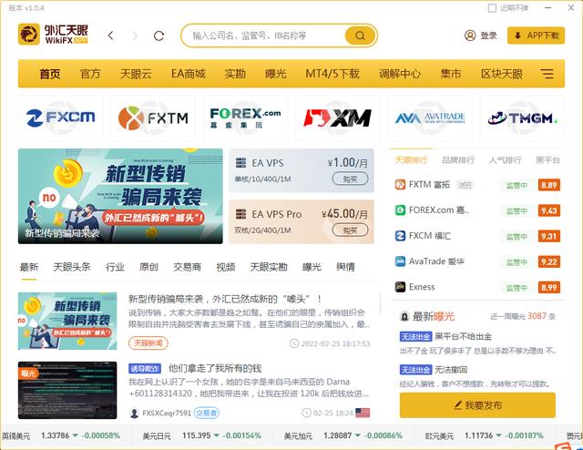 比如說外匯天眼,在外匯天眼沒有問世之前,很多人選擇外匯平臺跌了好幾個坑。原因也是因?yàn)槟壳笆袌鲋姓?guī)的都是國外的平臺,國內(nèi)信息有限,再加上黑平臺在其中渾水摸魚,新手交易者想要找到正規(guī)口碑好的外匯平臺,真的太難了。所幸外匯天眼的問世解決了這樣的問題,即使是國外的平臺,信息語言不通的情況也迎刃而解,在外匯天眼上清晰可見每一個平臺的監(jiān)管牌照、公司信息、官方網(wǎng)址和天眼評分。