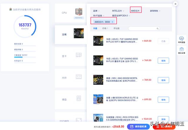 主板選個(gè)B550。因?yàn)檫x了某某CPU,所以應(yīng)該這樣子篩選。
