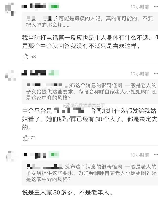 不是老年人,身體也很健康,還是個30多歲的女性,這就使得這則招聘啟事更加撲朔迷離,網(wǎng)友們也是議論紛紛,各種懷疑和猜測都隨之而來。
