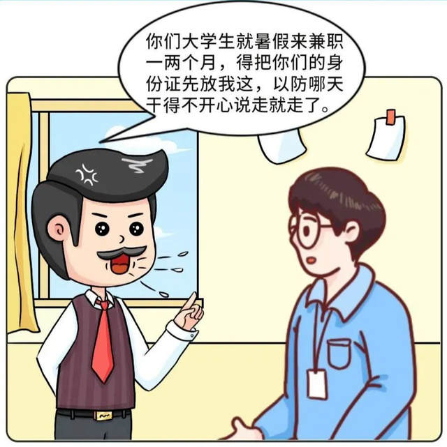 有些公司以暑期兼職的時限較短為理由,要求暫時扣留暑期工的身份證和學(xué)生證,并承諾在工作結(jié)束后將其歸還。