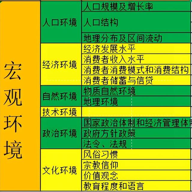 宏觀環(huán)境是指影響營銷環(huán)境的一系列巨大的社會(huì)力量,除特殊場合外一般以微觀環(huán)境為媒介去影響和制約企業(yè)的營銷活動(dòng),也被稱做間接營銷環(huán)境。不同行業(yè)和企業(yè)可根據(jù)自身特點(diǎn)和經(jīng)營需要根據(jù)PEST分析法來分析。