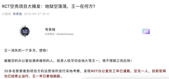 隨后,他投資了一家叫真鏈Realchain的區(qū)塊鏈平臺(tái),但在2018年幣值破發(fā),辦公室人去樓空,官網(wǎng)停止運(yùn)行,王一再次失聯(lián)。