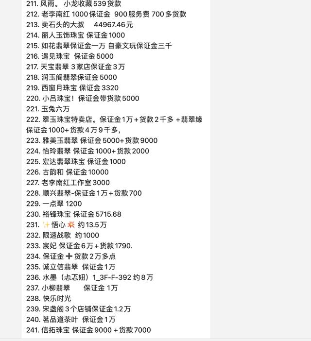 在一個(gè)維權(quán)商家群中,商家發(fā)起了一個(gè)接龍名單,顯示200多個(gè)商家被拖欠貨款。據(jù)了解,如今維權(quán)人數(shù)已經(jīng)超過600人,被拖欠貨款超過4000萬元。