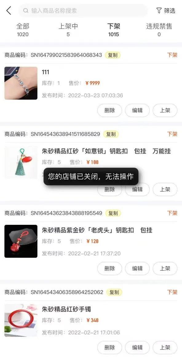 一位商家告訴《天下網(wǎng)商》,他在鑒寶上開了多個(gè)店鋪,如今所有店鋪凍結(jié),后臺(tái)數(shù)據(jù)清空,貨款加保證金共損失近七萬?!拔覀儧]有了所有數(shù)據(jù),”另一位直播商家老派則損失了90多萬貨款,不得不賣房還債。他今年上半年的主題就一個(gè):維權(quán),找王一。