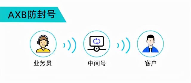 2、AXB中間號模式,通過與APP、小程序或PC端的軟電話綁定,銷售人員在打電話的同時,先是打給中間號,再由中間號碼轉(zhuǎn)撥給客戶,最終實現(xiàn)業(yè)務(wù)與客戶之進行通話,而銷售通話記錄里只有一個中間號的通話記錄,不會觸發(fā)封號機制。