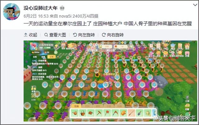 雖然上班996,回家還要在莊園里007干活,但自嘲“莊園打工人”的他們,永遠割舍不下那份收獲自家農(nóng)作物的喜悅。