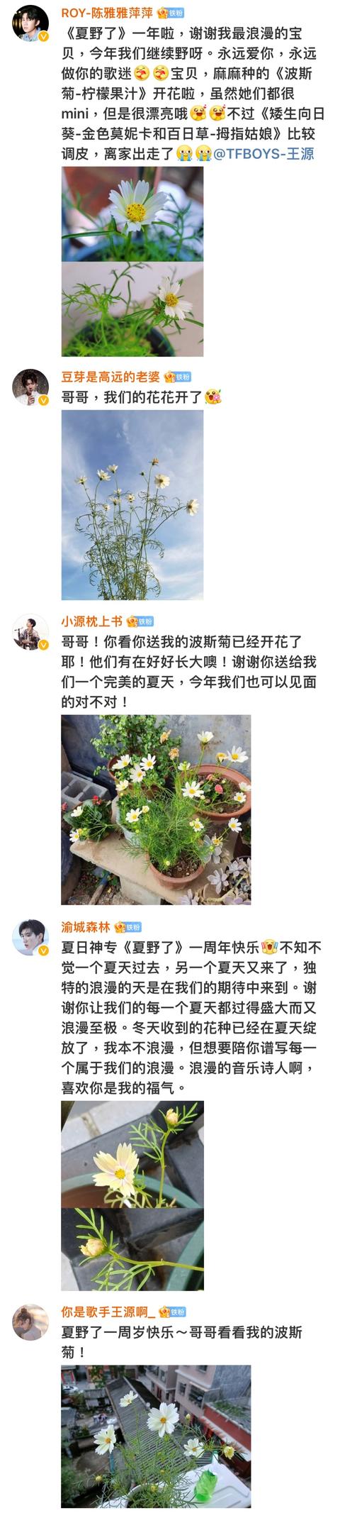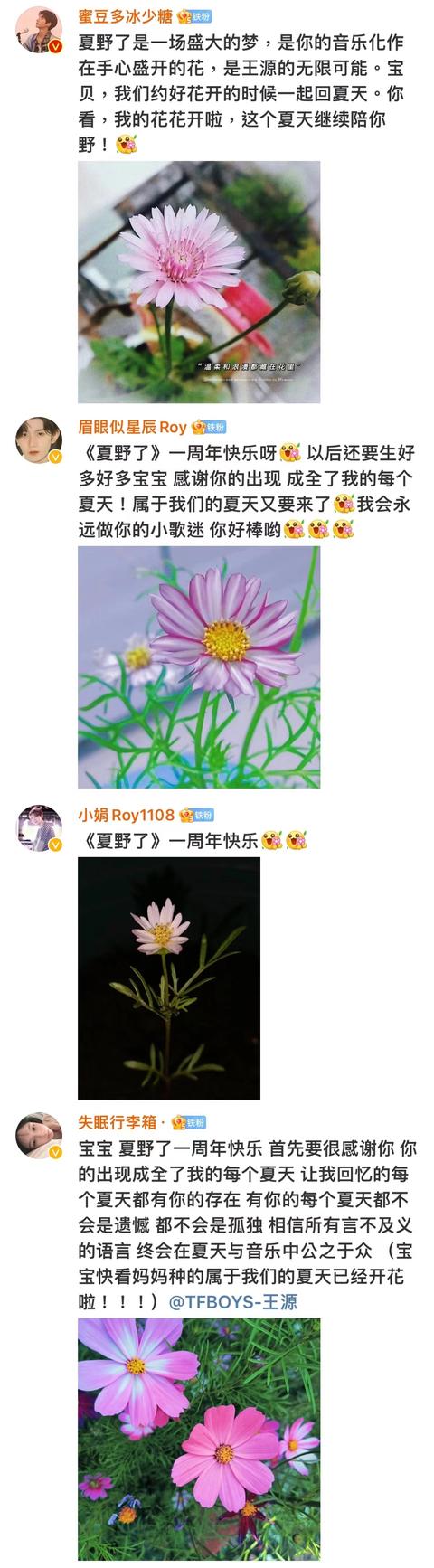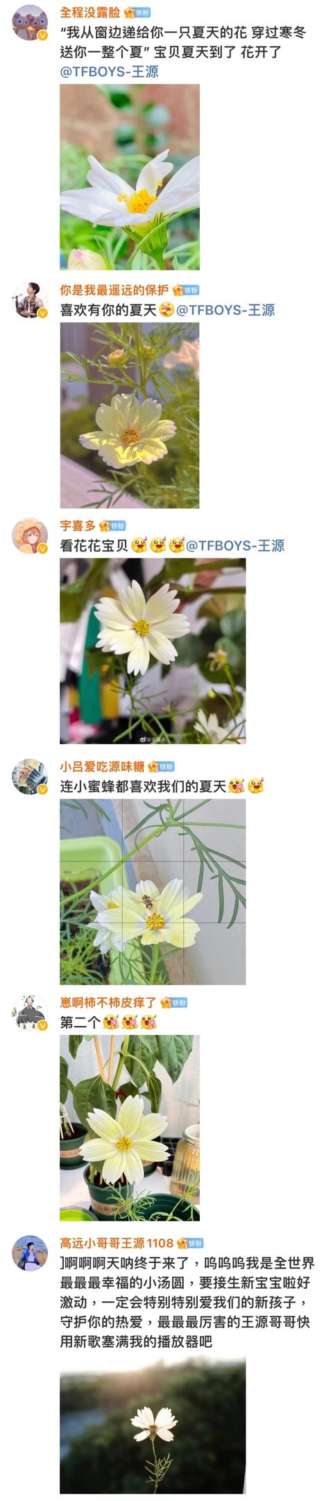 ]]>王源的粉絲小湯圓們是一群熱衷于回應(yīng)每一份愛意的群體,六月十六日王源發(fā)博慶祝夏野了一周年,小湯圓們便紛紛在王源評(píng)論區(qū)發(fā)布了夏野了開花圖片,更是有路人調(diào)侃到王源評(píng)論區(qū)開花了,小湯圓們?yōu)橥踉丛V說愛意,把所有的愛給他,王源也在用自己的行動(dòng)來向粉絲訴說著愛意和感謝,就讓我們一起來看看源品之間令人感動(dòng)的雙向奔赴吧。