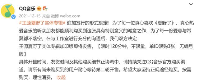 還有夏野了實(shí)體專輯發(fā)布時(shí) ,王源僅用了四十分鐘的時(shí)間敲定了限時(shí)不限量,不顯示銷量,每一個(gè)人最多限購三張也是為了不給粉絲購買壓力,不讓每一份愛意與希冀落空。