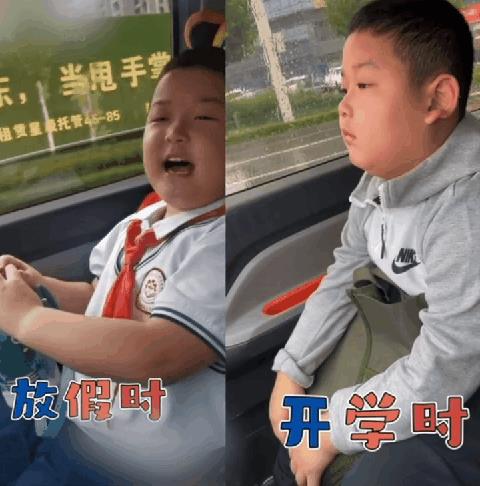 同時(shí),也果然看到了許多孩子提著書包、耷拉著臉去上學(xué)的好笑場(chǎng)景。