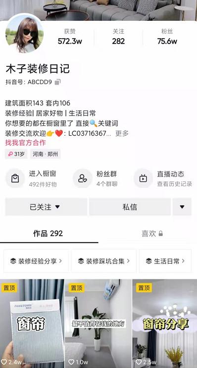 她在抖音上也關(guān)注了很多關(guān)于房間裝修的賬號(hào)。