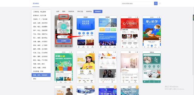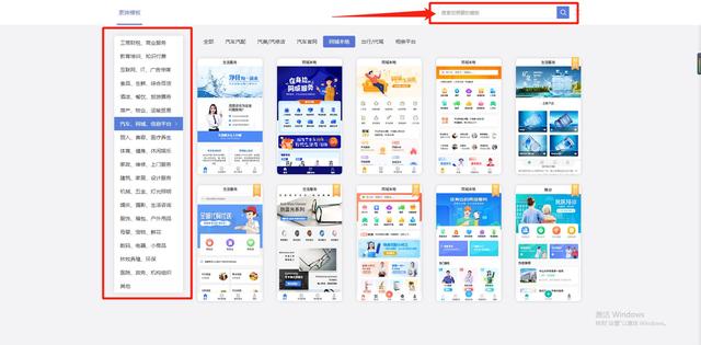 在模板庫(kù)左側(cè)的行業(yè)分類中,可以查找相關(guān)的小程序模板分類。或者用搜索欄查找模板。
