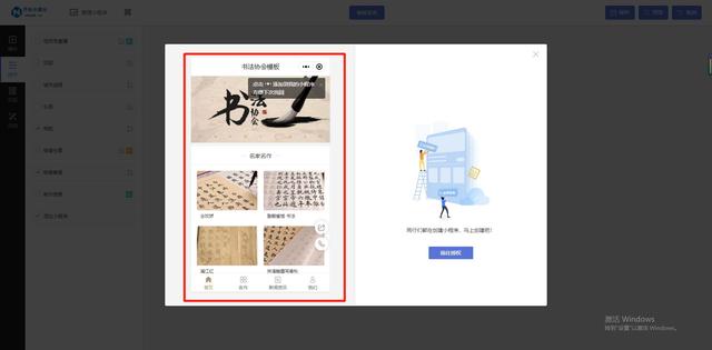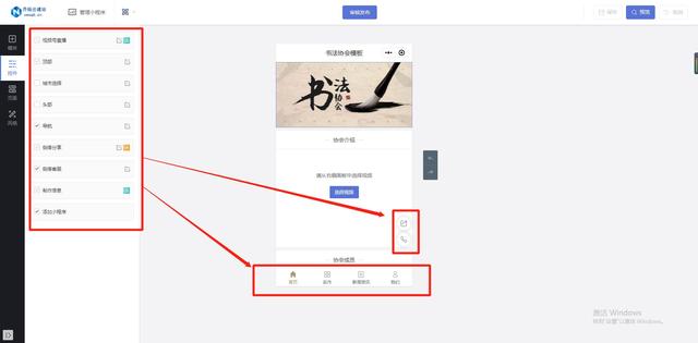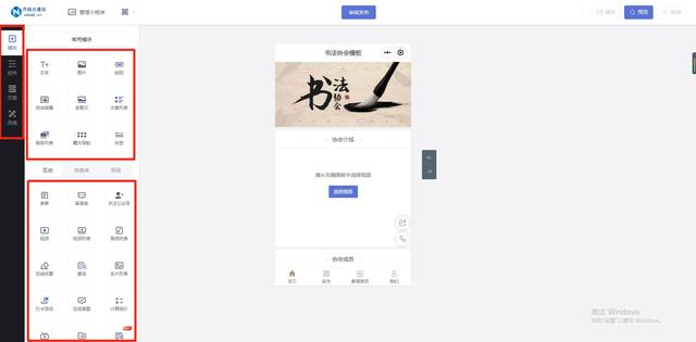 第三步:在模板頁(yè)面中,左側(cè)的四個(gè)工具包含了很多編輯功能,幫助用戶在搭建小程序的時(shí)候,搭建起來(lái)更快捷方便。