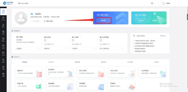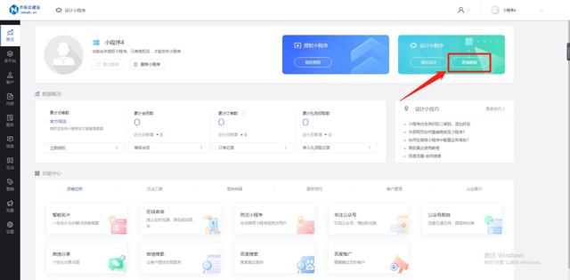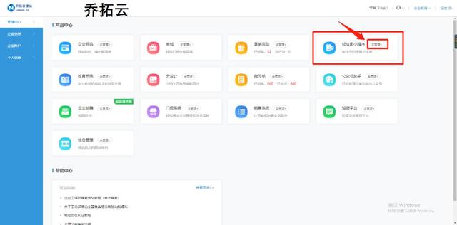 第一步:首先打開(kāi)搭建網(wǎng)站平臺(tái),登錄進(jìn)產(chǎn)品中心,在中心里找【輕應(yīng)用小程序】選項(xiàng),點(diǎn)擊進(jìn)入小程序的后臺(tái)。如圖