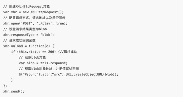 BLOB,它的全稱為big binary large object,譯為二進(jìn)制大對象。一般來說,首先由后端,比如 JAVA 將視頻轉(zhuǎn)換為blog對象傳給前端,前端在拿到blog對象后,再通過URL.createObjectURL生成臨時地址,賦值給video標(biāo)簽的src屬性,就可以實(shí)現(xiàn)這個效果了。前端的大致代碼如下: