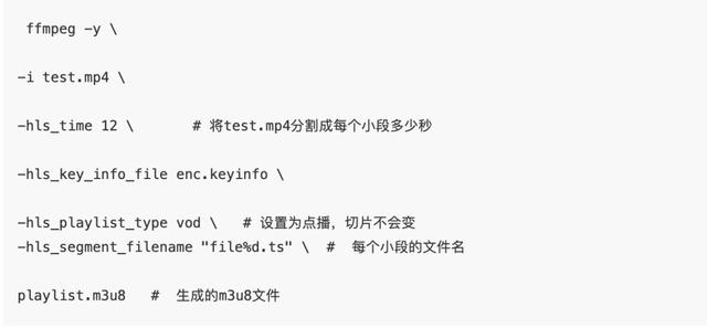 切片加密原理:將視頻從MP4文件切片成多個ts文件,并使用AES-128對每一片視頻進(jìn)行加密,最后生成m3u8文件。這里我們需要用到ffmpeg。