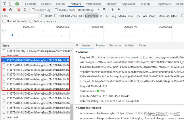 試想一下,如果我們把視頻切成一段一段的,每次只加載一段,看完了再加載一段,這樣能有效的節(jié)省資源。還是以B站的一個視頻為例,在F12中的Network里可以看到,網(wǎng)站一直在一段一段的請求視頻流的數(shù)據(jù)。(PS:這個m4s是HTML的一種格式)