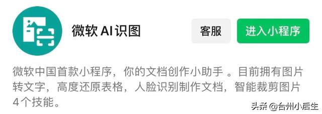 這是微軟推出的一個(gè)AI小程序,它可以用來提取圖片中的文字或者人物。