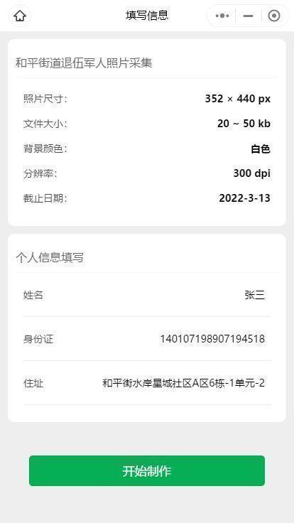 5、需要參加采集的人員,通過微信鏈接或者掃碼就可以進(jìn)入證件照采集了,首先按要求填寫個(gè)人信息: