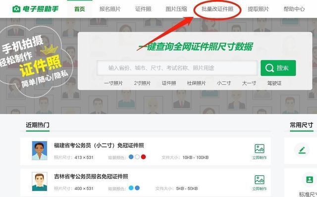 2、進(jìn)入【報(bào)名電子照助手】網(wǎng)站,找到“批量改證件照”,目前只支持在電腦瀏覽器中操作: