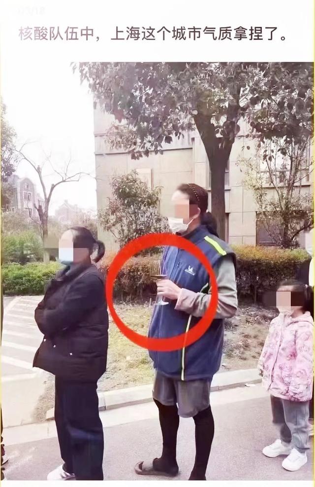 小區(qū)居民排隊(duì)做核酸,你拿個(gè)紅酒杯喝酒,你是想挑戰(zhàn)并藐視奧密克戎的傳播能力呢?還是藐視自己小區(qū)鄰居?還是藐視法律?