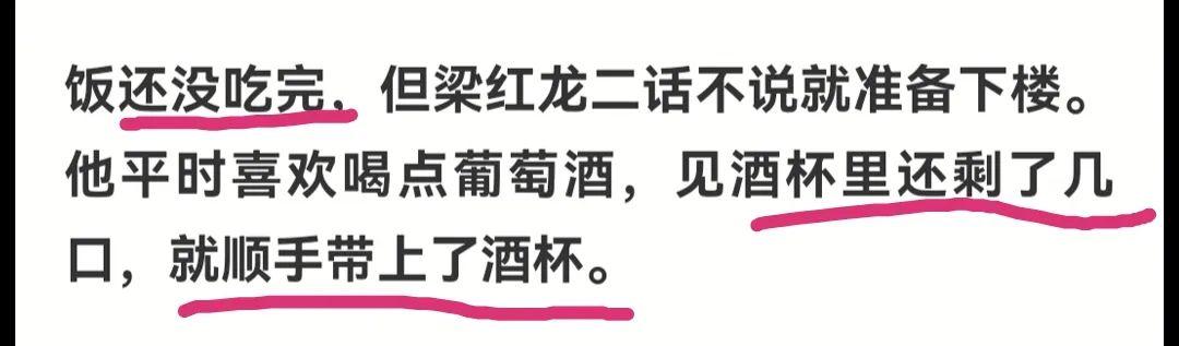因?yàn)橥ㄖ龊怂釙r(shí),“紅酒哥”飯還沒(méi)吃完。