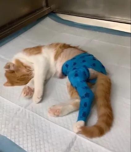 印象最深刻的,是今年8月份一個剛畢業(yè)的小姑娘。她心急如焚地找到大白,說在路上撿到了一只橘貓,應(yīng)該是被車軋過了,下肢粉碎性骨折,整個骨頭都碎掉了。