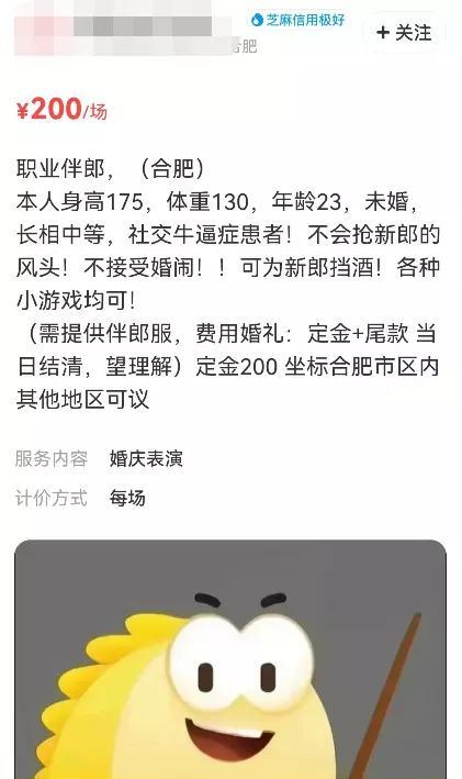 一些小眾副業(yè)甚至是“應(yīng)節(jié)”而生的,比如伴娘伴郎團。國慶期間,扎堆結(jié)婚現(xiàn)象導(dǎo)致伴娘伴郎需求暴漲,許多有社交牛逼癥的人便主動請纓,不僅接受素顏出鏡,還承諾為新郎擋酒,真救社恐于危難之中。