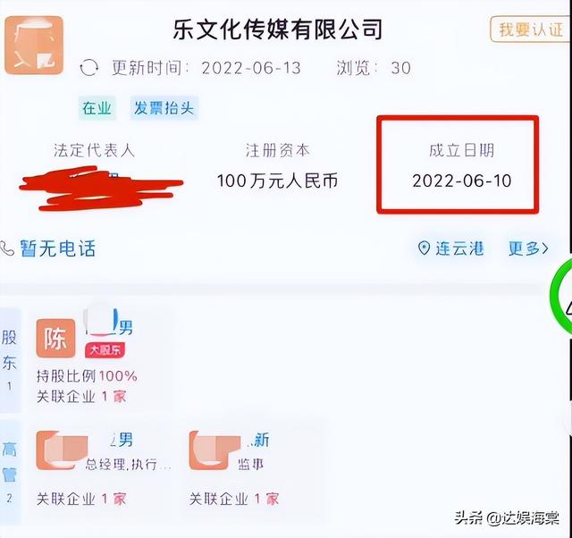 最近,陳亞男又注冊(cè)了一家公司,注冊(cè)日期是6月份。