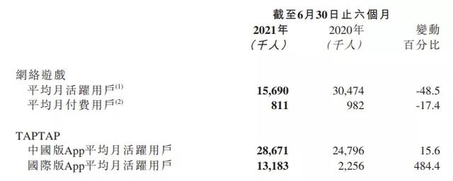 上半年TapTap中國(guó)版平均月活躍用戶為2867萬(wàn),同比增長(zhǎng)15.6%,游戲下載次數(shù)為2.48億次,同比增長(zhǎng)12.8%;TapTap國(guó)際版平均月活躍用戶為1318萬(wàn),同比增長(zhǎng)484.4%。