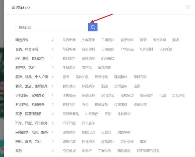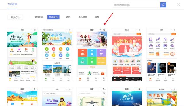 在小程序模板頁(yè)面中,我們可以根據(jù)自己的行業(yè)來(lái)選擇相應(yīng)的模板,亦可通過(guò)搜索框快捷的定位到自己的所屬行業(yè)。