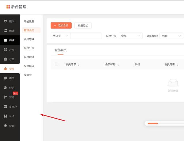 在后臺(tái)中,我們還可以使用會(huì)員系統(tǒng),設(shè)置會(huì)員等級(jí),這樣方便管理以及提供差異化服務(wù)方式,幫助商家提升會(huì)員忠誠(chéng)度,刺激低等級(jí)會(huì)員。
