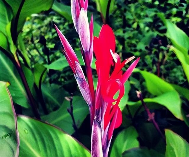 芭蕉芋這種植物有很強的生命力,它基本上不挑生長的環(huán)境,在路邊、院子的角落里等,隨便一個地方都能種活。而且它的花朵艷麗,鮮紅色的非常喜慶。同時葉子也很肥大、翠綠,觀賞價值很高。