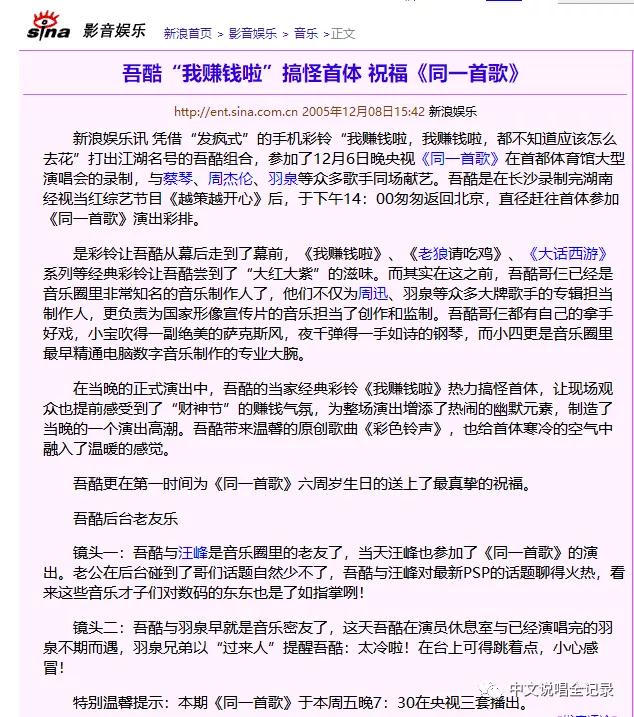 這首歌是由幾位大學(xué)生組成的樂隊(duì)“吾酷”創(chuàng)作的。當(dāng)時(shí),他們?cè)邮苎胍暡稍L,參加多個(gè)大型晚會(huì)和綜藝節(jié)目。同時(shí),他們還通過(guò)這首歌的彩鈴下載業(yè)務(wù)賺了一筆可觀的收入。2005年的新浪新聞報(bào)道也證實(shí)了他們當(dāng)年的知名度和影響力。