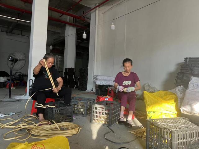 記者在現(xiàn)場(chǎng)還看到,工人里除了老人,還有不少殘疾人,他們一邊聊著家常一邊做著手工活,出品效率絲毫不受影響?!澳銊e看我的手不太方便,但一點(diǎn)也不影響,大的藤椅,小的燈具,我都可以完成?!瘪蠼阈χf,工廠里的工作靈活性很高,時(shí)間不固定,什么時(shí)候有空,什么時(shí)候來做工。甚至還能把拿原材料到家里做,一天能賺100元左右。