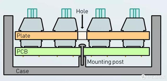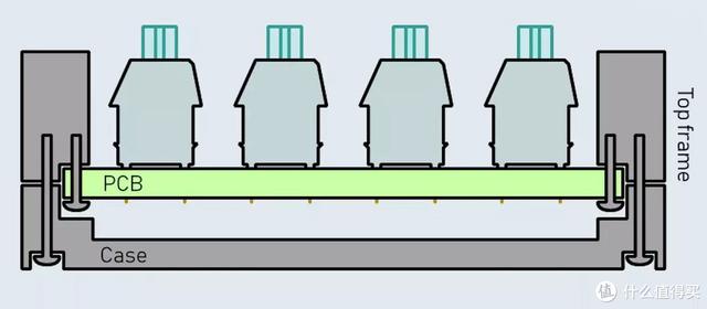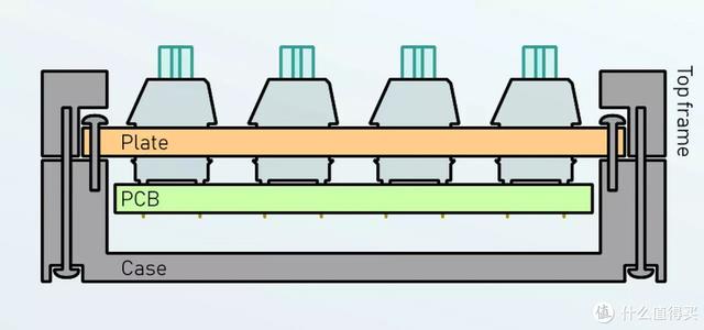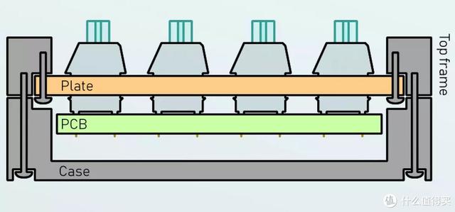 TOP結(jié)構(gòu)就是將定位板與上殼連接,上殼再與下殼連接,這種結(jié)構(gòu)聲音反饋和手感都能保持不錯的一致性