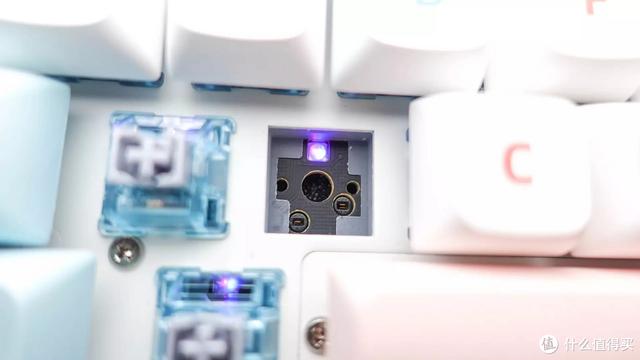 鍵帽雙色注塑透光,手感上乘不會掉字,燈效也優(yōu)秀,PBT長時間不容易打油。