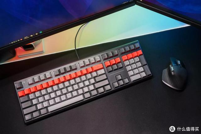 雖然不帶光,鍵盤深色+亮色鍵盤殼,三色鍵帽也非常到位,輕盈的軸體質(zhì)感和耐用的鍵帽,適合上班辦公用,黃色的數(shù)字鍵帽將鍵盤分割開,是他的特點,讓人眼前一亮,