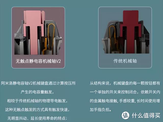 阿米洛自家靜電容軸體,我這款櫻花粉打字輕盈有彈性,鍵軸按起來特別穩(wěn)當(dāng),沒有一絲晃動,質(zhì)感非常優(yōu)秀。