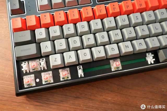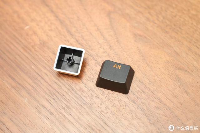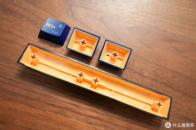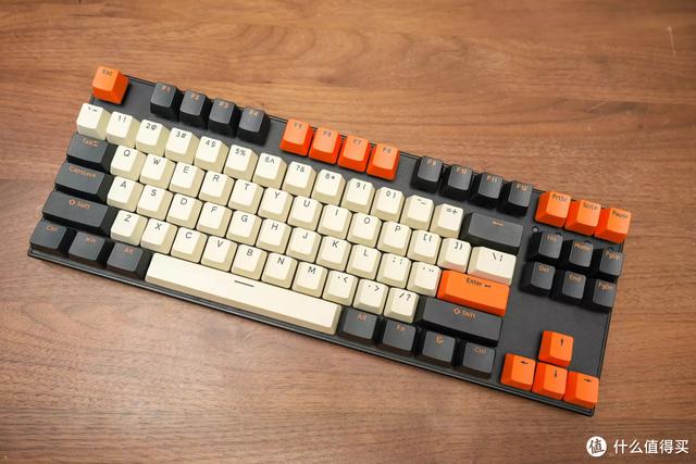 PBT雙色鍵帽不容易掉色,內(nèi)部橘黃色撞色,也挺好看。