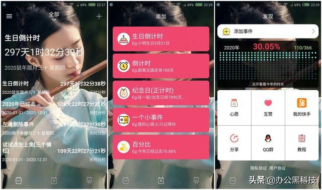 經(jīng)常疏于時(shí)間管理的小伙伴建議使用這款A(yù)pp,它可以幫助你更充分地管理自己的時(shí)間,還可以添加一些比較有紀(jì)念意義的日子,設(shè)置提醒,到時(shí)間就會(huì)準(zhǔn)時(shí)提醒你,還自帶好看的背景和BGM。