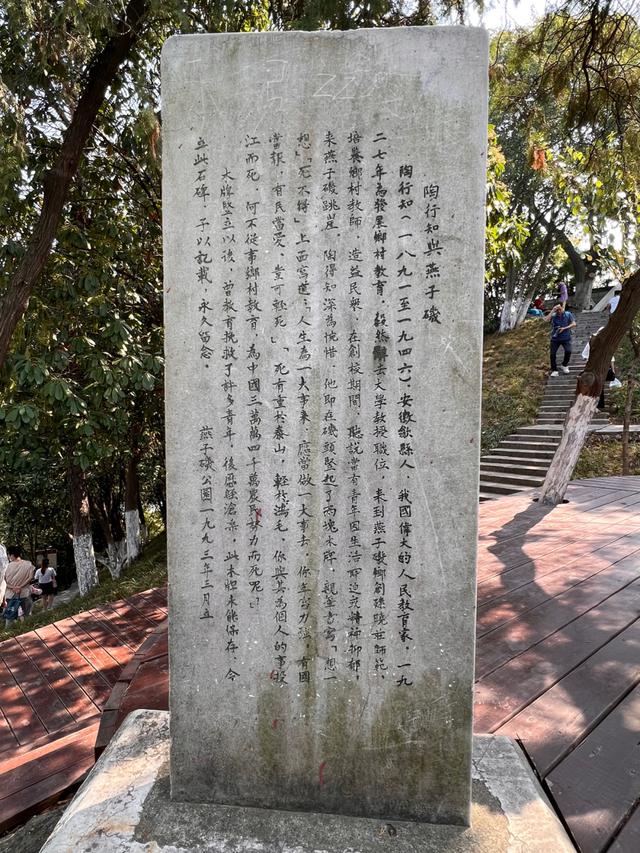 看到陶行知寫(xiě)的“想一想 死不得”碑,才知道這里不僅是江邊名勝,還曾是自殺圣地,所有才有陶行知?jiǎng)裾]不要輕生的木牌(現(xiàn)在改為石碑)。