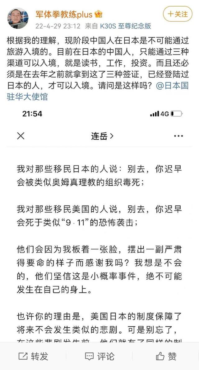 “醫(yī)療簽最長只能簽3個月,也就是說,連岳老師是今年2月去的日本?但是,2月份,似乎也只允許日本人回國入境,外國人好像是進不去的……”